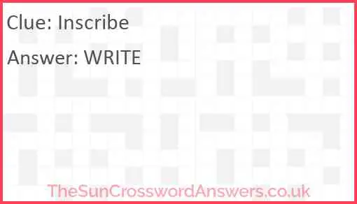 Inscribe is a crossword clue for which we have 1 possible answer and we have spotted 1 times in our database. This crossword clue was last seen on 16 September 2019 in The Sun Coffee Time Crossword puzzle!