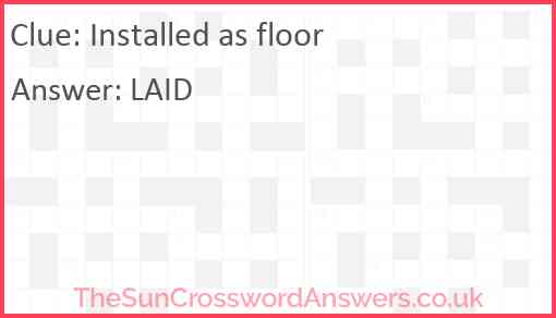 Installed as floor is a crossword clue for which we have 1 possible answer and we have spotted 2 times in our database. This crossword clue was last seen on 10 July 2024 in The Sun Coffee Time Crossword puzzle!