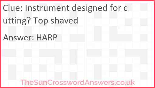 Instrument designed for cutting? Top shaved is a crossword clue for which we have 1 possible answer and we have spotted 1 times in our database. This crossword clue was last seen on 23 February 2024 in The Sun Cryptic Crossword puzzle!
