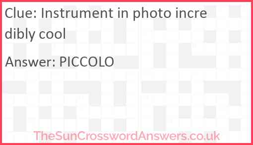 Instrument in photo incredibly cool is a crossword clue for which we have 1 possible answer and we have spotted 2 times in our database. This crossword clue was last seen on 18 October 2023 in The Sun Cryptic Crossword puzzle!