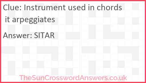 Instrument used in chords it arpeggiates is a crossword clue for which we have 1 possible answer and we have spotted 1 times in our database. This crossword clue was last seen on 27 December 2018 in The Sun Cryptic Crossword puzzle!