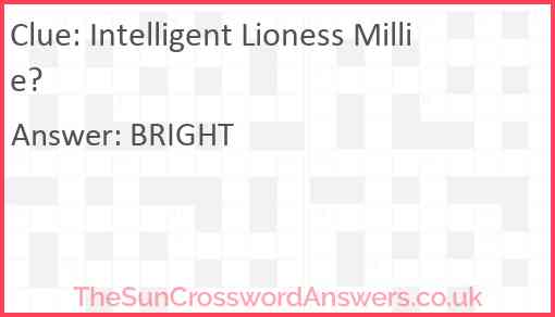 Intelligent Lioness Millie? is a crossword clue for which we have 1 possible answer and we have spotted 1 times in our database. This crossword clue was last seen on 10 January 2024 in The Sun Cryptic Crossword puzzle!