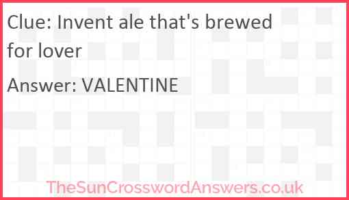 Invent ale that's brewed for lover is a crossword clue for which we have 1 possible answer and we have spotted 1 times in our database. This crossword clue was last seen on 16 March 2025 in The Sun Cryptic Crossword puzzle!