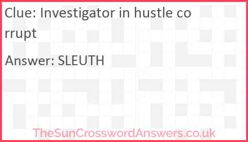 Investigator in hustle corrupt is a crossword clue for which we have 1 possible answer and we have spotted 2 times in our database. This crossword clue was last seen on 14 January 2025 in The Sun Cryptic Crossword puzzle!