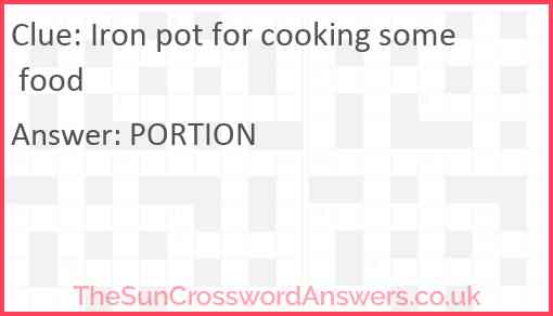 Iron pot for cooking some food is a crossword clue for which we have 1 possible answer and we have spotted 1 times in our database. This crossword clue was last seen on 07 March 2022 in The Sun Cryptic Crossword puzzle!
