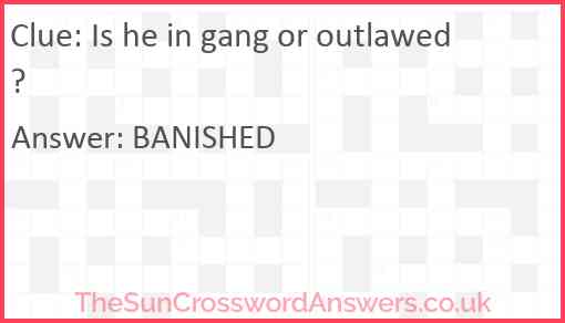 Is he in gang or outlawed? is a crossword clue for which we have 1 possible answer and we have spotted 2 times in our database. This crossword clue was last seen on 13 August 2024 in The Sun Cryptic Crossword puzzle!