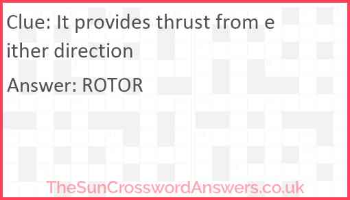 It provides thrust from either direction is a crossword clue for which we have 1 possible answer and we have spotted 1 times in our database. This crossword clue was last seen on 03 February 2020 in The Sun Cryptic Crossword puzzle!