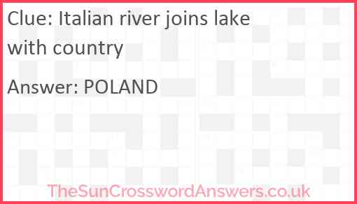 Italian river joins lake with country is a crossword clue for which we have 1 possible answer and we have spotted 3 times in our database. This crossword clue was last seen on 02 June 2024 in The Sun Cryptic Crossword puzzle!