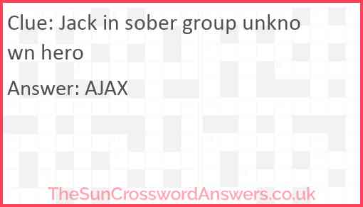 Jack in sober group unknown hero is a crossword clue for which we have 1 possible answer and we have spotted 1 times in our database. This crossword clue was last seen on 19 March 2025 in The Sun Cryptic Crossword puzzle!