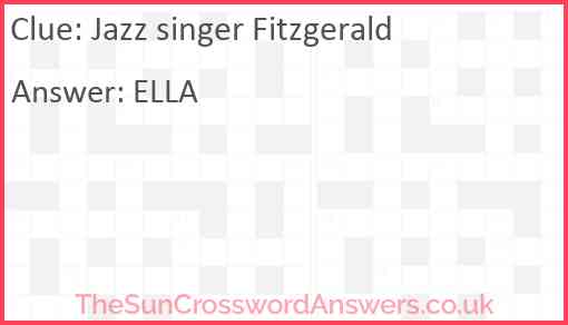 Jazz singer Fitzgerald is a crossword clue for which we have 1 possible answer and we have spotted 3 times in our database. This crossword clue was last seen on 19 April 2025 in The Sun Coffee Time Crossword puzzle!