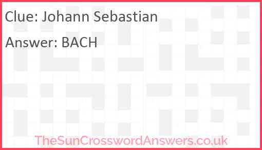 Johann Sebastian is a crossword clue for which we have 1 possible answer and we have spotted 6 times in our database. This crossword clue was last seen on 10 February 2024 in The Sun Coffee Time Crossword puzzle!