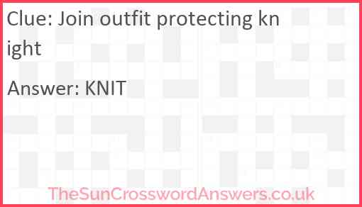 Join outfit protecting knight is a crossword clue for which we have 1 possible answer and we have spotted 3 times in our database. This crossword clue was last seen on 22 September 2023 in The Sun Cryptic Crossword puzzle!