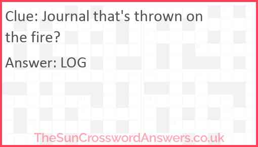 Journal that's thrown on the fire? is a crossword clue for which we have 1 possible answer and we have spotted 2 times in our database. This crossword clue was last seen on 23 January 2025 in The Sun Cryptic Crossword puzzle!