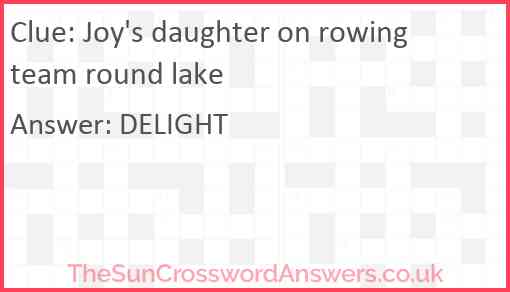 Joy's daughter on rowing team round lake is a crossword clue for which we have 1 possible answer and we have spotted 1 times in our database. This crossword clue was last seen on 26 December 2022 in The Sun Cryptic Crossword puzzle!