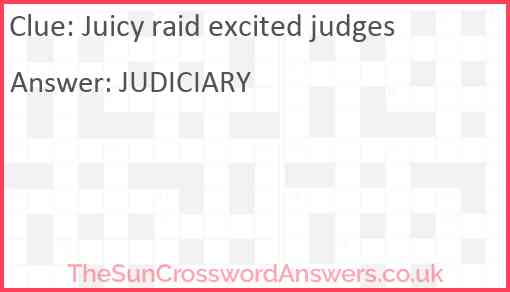 Juicy raid excited judges is a crossword clue for which we have 1 possible answer and we have spotted 2 times in our database. This crossword clue was last seen on 09 March 2023 in The Sun Cryptic Crossword puzzle!