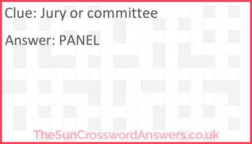 Jury or committee is a crossword clue for which we have 1 possible answer and we have spotted 4 times in our database. This crossword clue was last seen on 21 April 2022 in The Sun Coffee Time Crossword puzzle!