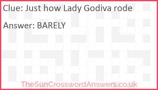 Just how Lady Godiva rode is a crossword clue for which we have 1 possible answer and we have spotted 1 times in our database. This crossword clue was last seen on 05 December 2019 in The Sun Cryptic Crossword puzzle!