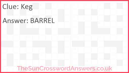 Keg is a crossword clue for which we have 1 possible answer and we have spotted 6 times in our database. This crossword clue was last seen on 22 February 2025 in The Sun Coffee Time Crossword puzzle!