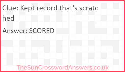 Kept record that's scratched is a crossword clue for which we have 1 possible answer and we have spotted 3 times in our database. This crossword clue was last seen on 06 May 2024 in The Sun Cryptic Crossword puzzle!