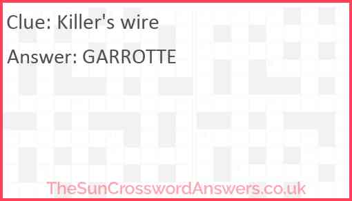 Killer's wire is a crossword clue for which we have 1 possible answer and we have spotted 1 times in our database. This crossword clue was last seen on 18 October 2024 in The Sun Coffee Time Crossword puzzle!