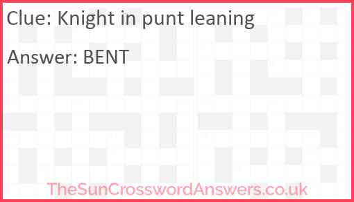 Knight in punt leaning is a crossword clue for which we have 1 possible answer and we have spotted 3 times in our database. This crossword clue was last seen on 30 September 2024 in The Sun Cryptic Crossword puzzle!