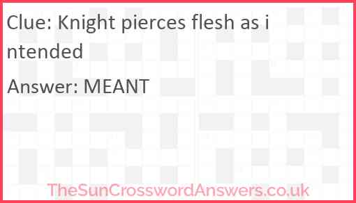 Knight pierces flesh as intended is a crossword clue for which we have 1 possible answer and we have spotted 3 times in our database. This crossword clue was last seen on 22 June 2023 in The Sun Cryptic Crossword puzzle!