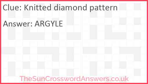 Knitted diamond pattern is a crossword clue for which we have 1 possible answer and we have spotted 8 times in our database. This crossword clue was last seen on 04 December 2024 in The Sun Coffee Time Crossword puzzle!