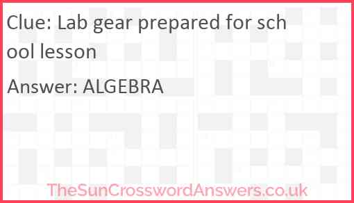 Lab gear prepared for school lesson is a crossword clue for which we have 1 possible answer and we have spotted 2 times in our database. This crossword clue was last seen on 11 September 2022 in The Sun Cryptic Crossword puzzle!