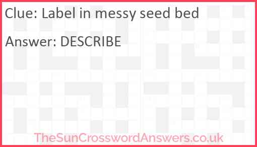 Label in messy seed bed is a crossword clue for which we have 1 possible answer and we have spotted 1 times in our database. This crossword clue was last seen on 04 July 2020 in The Sun Cryptic Crossword puzzle!