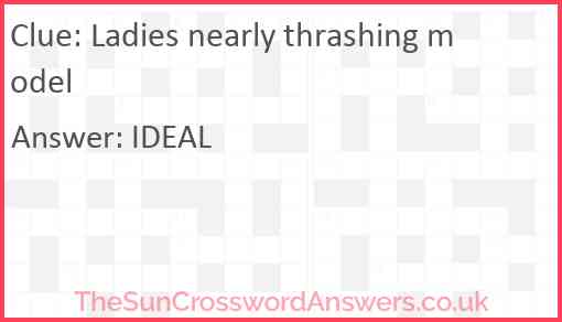 Ladies nearly thrashing model is a crossword clue for which we have 1 possible answer and we have spotted 4 times in our database. This crossword clue was last seen on 19 April 2025 in The Sun Cryptic Crossword puzzle!