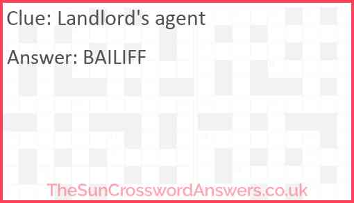 Landlord's agent is a crossword clue for which we have 1 possible answer and we have spotted 3 times in our database. This crossword clue was last seen on 04 July 2022 in The Sun Coffee Time Crossword puzzle!