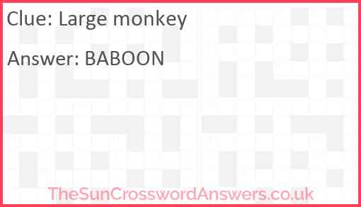 Large monkey is a crossword clue for which we have 1 possible answer and we have spotted 6 times in our database. This crossword clue was last seen on 22 October 2022 in The Sun Coffee Time Crossword puzzle!
