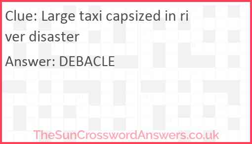 Large taxi capsized in river disaster is a crossword clue for which we have 1 possible answer and we have spotted 2 times in our database. This crossword clue was last seen on 04 December 2023 in The Sun Cryptic Crossword puzzle!