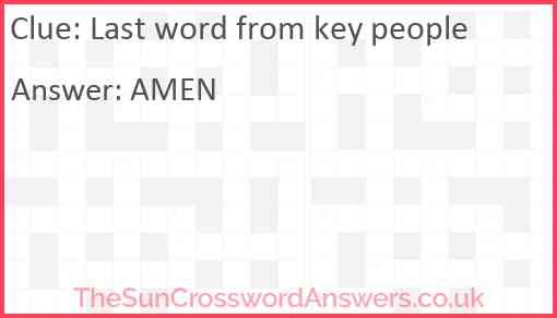 Last word from key people is a crossword clue for which we have 1 possible answer and we have spotted 3 times in our database. This crossword clue was last seen on 11 June 2024 in The Sun Cryptic Crossword puzzle!
