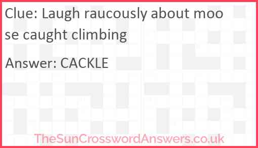 Laugh raucously about moose caught climbing is a crossword clue for which we have 1 possible answer and we have spotted 1 times in our database. This crossword clue was last seen on 13 October 2021 in The Sun Cryptic Crossword puzzle!