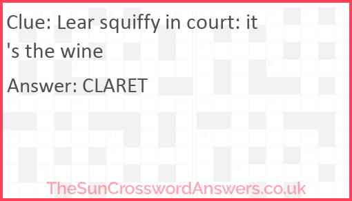 Lear squiffy in court: it's the wine is a crossword clue for which we have 1 possible answer and we have spotted 2 times in our database. This crossword clue was last seen on 03 November 2023 in The Sun Cryptic Crossword puzzle!