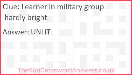 Learner in military group hardly bright is a crossword clue for which we have 1 possible answer and we have spotted 3 times in our database. This crossword clue was last seen on 26 August 2023 in The Sun Cryptic Crossword puzzle!