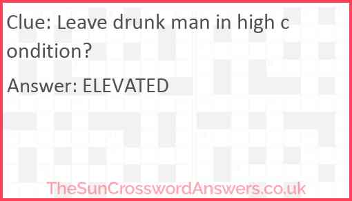 Leave drunk man in high condition? is a crossword clue for which we have 1 possible answer and we have spotted 2 times in our database. This crossword clue was last seen on 01 July 2024 in The Sun Cryptic Crossword puzzle!