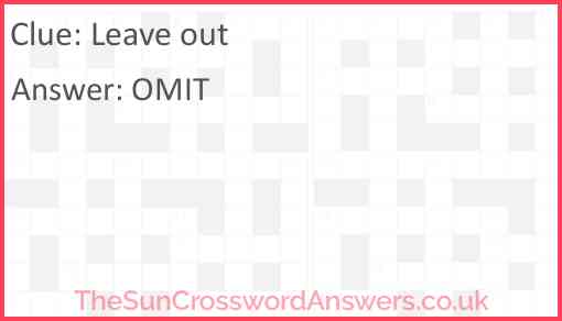 Leave out is a crossword clue for which we have 2 possible answer and we have spotted 14 times in our database. This crossword clue was last seen on 07 June 2024 in The Sun Coffee Time Crossword puzzle!