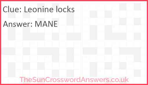 Leonine locks is a crossword clue for which we have 1 possible answer and we have spotted 3 times in our database. This crossword clue was last seen on 21 October 2024 in The Sun Coffee Time Crossword puzzle!