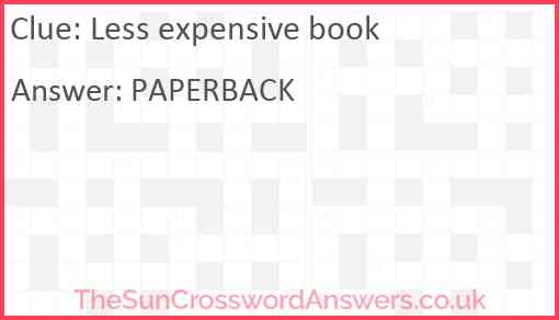 Less expensive book is a crossword clue for which we have 1 possible answer and we have spotted 2 times in our database. This crossword clue was last seen on 22 October 2023 in The Sun Coffee Time Crossword puzzle!