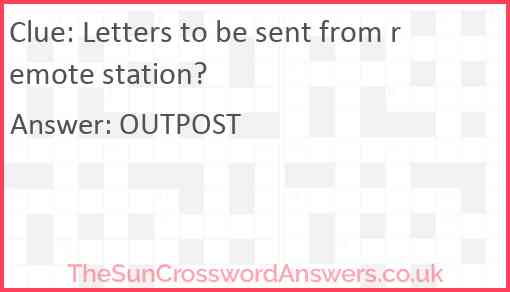 Letters to be sent from remote station? is a crossword clue for which we have 1 possible answer and we have spotted 3 times in our database. This crossword clue was last seen on 14 September 2022 in The Sun Cryptic Crossword puzzle!