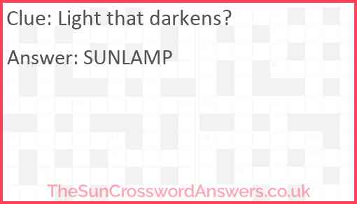 Light that darkens? is a crossword clue for which we have 1 possible answer and we have spotted 2 times in our database. This crossword clue was last seen on 06 January 2023 in The Sun Cryptic Crossword puzzle!