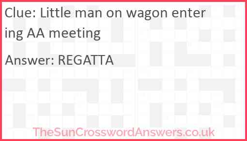 Little man on wagon entering AA meeting is a crossword clue for which we have 1 possible answer and we have spotted 1 times in our database. This crossword clue was last seen on 07 December 2024 in The Sun Cryptic Crossword puzzle!