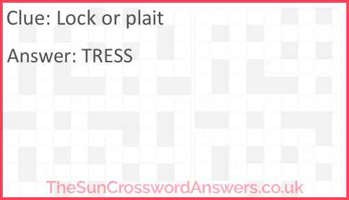 Lock or plait is a crossword clue for which we have 1 possible answer and we have spotted 7 times in our database. This crossword clue was last seen on 11 April 2024 in The Sun Coffee Time Crossword puzzle!