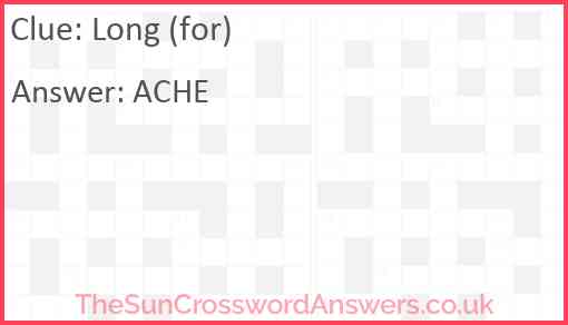 Long (for) is a crossword clue for which we have 1 possible answer and we have spotted 2 times in our database. This crossword clue was last seen on 26 February 2025 in The Sun Coffee Time Crossword puzzle!