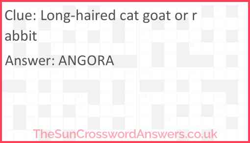 Long-haired cat goat or rabbit is a crossword clue for which we have 1 possible answer and we have spotted 1 times in our database. This crossword clue was last seen on 26 October 2018 in The Sun Coffee Time Crossword puzzle!