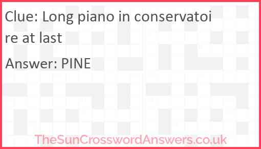 Long piano in conservatoire at last is a crossword clue for which we have 1 possible answer and we have spotted 1 times in our database. This crossword clue was last seen on 20 August 2024 in The Sun Cryptic Crossword puzzle!