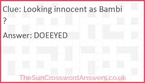 Looking innocent as Bambi? is a crossword clue for which we have 1 possible answer and we have spotted 1 times in our database. This crossword clue was last seen on 16 April 2023 in The Sun Cryptic Crossword puzzle!