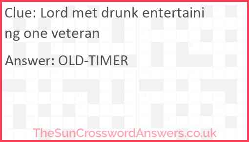 Lord met drunk entertaining one veteran is a crossword clue for which we have 2 possible answer and we have spotted 2 times in our database. This crossword clue was last seen on 14 June 2021 in The Sun Cryptic Crossword puzzle!
